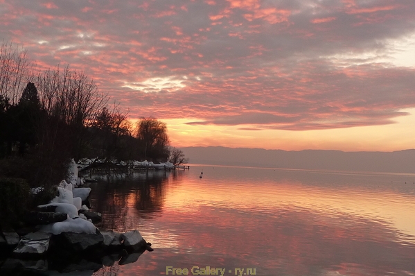 Description:    Февральский вечер в Тонон-ле-Бэн, послезакатное небо отражается в Женевском озере