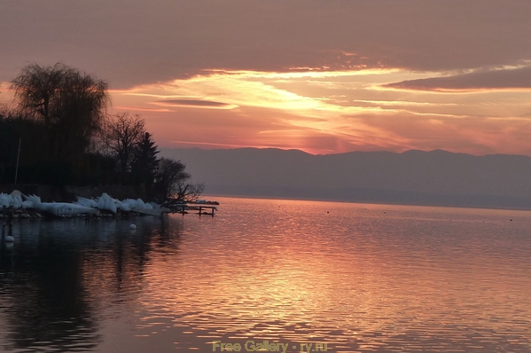 Description:    Февральский закат в Тонон-ле-Бэн отражается в водах Женевского озера