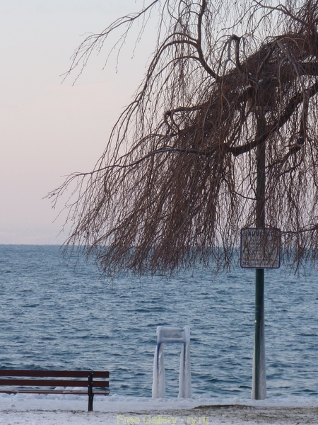 Description:    Дерево на замерзшей набережной Женевского озера в Эвиане, февраль