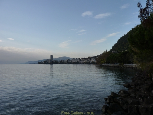 Description:    Вечерний вид на Женевское озеро и Монтрё, октябрь