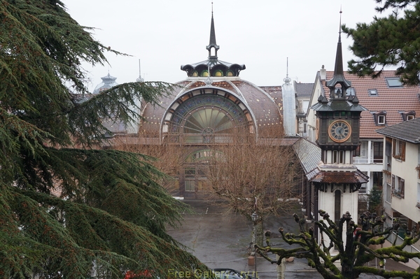 Description:    Evian, Évian, art-nouveau building, grey winter day Эвиан, здание в стиле арт-нуво (модерн), пасмурный зимний день