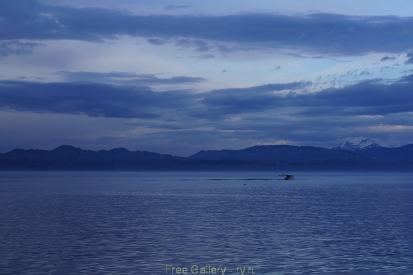 Description:    Lake view captured from lake embankment, Evian-les-Bains, march. Вид на озеро с набережной в г.Эвиан-ле-Бен, март.