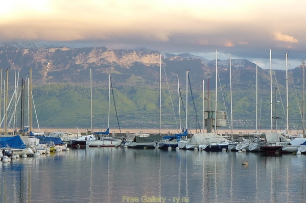 Description:     View from Lausanne at Lake Geneva, Alps, clouds in terrific evening light. May Вид с набережной Лозанны на Женевское озеро, облака, Альпы, яхты, в вечернем свете. Май.